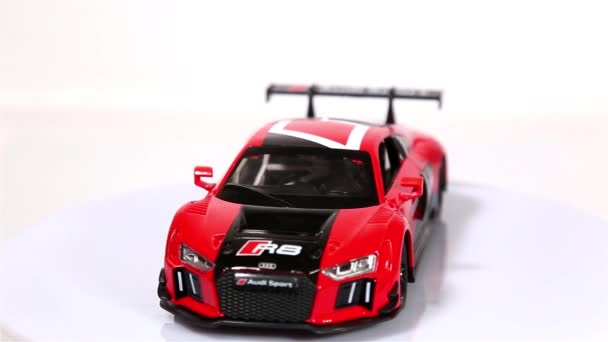 Berlim Alemanha Janeiro 2019 Vermelho Audi R8 Lms Escala Modelo Esportivo E Giro Isolado No Fundo Branco