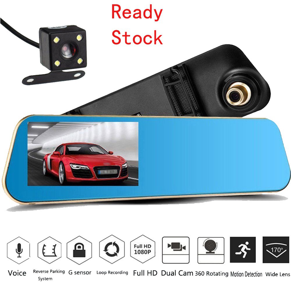 In Stock Dash Cam Dual Lens 4 3 Car Camera Rearview Mirror 1080fhd Car Cam